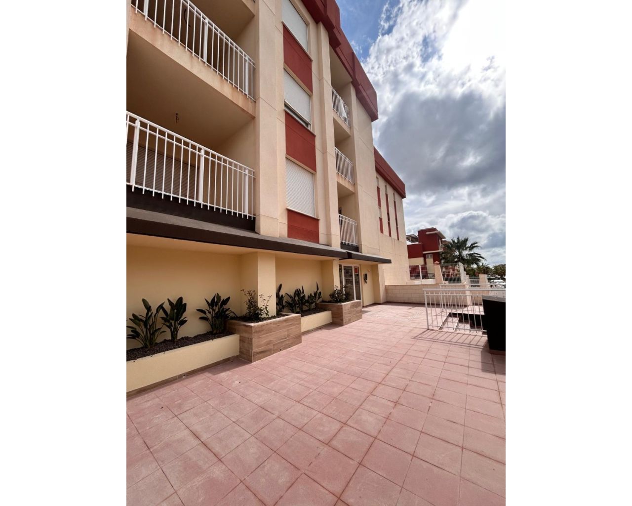 The residential complex offers a communal swimming pool, ideal for cooling off and enjoying the pleasant climate, as well as attractive garden areas that provide a peaceful environment.