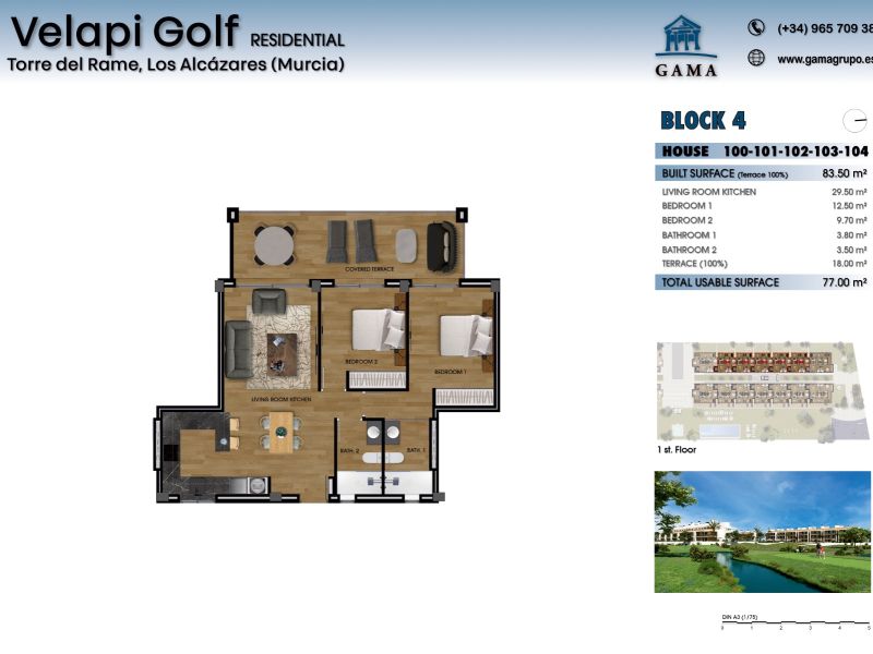 Enjoy your own private terrace, perfect for relaxing or dining outdoors, and a communal swimming pool surrounded by green areas where you can unwind and enjoy the sunny Mediterranean weather all year round.