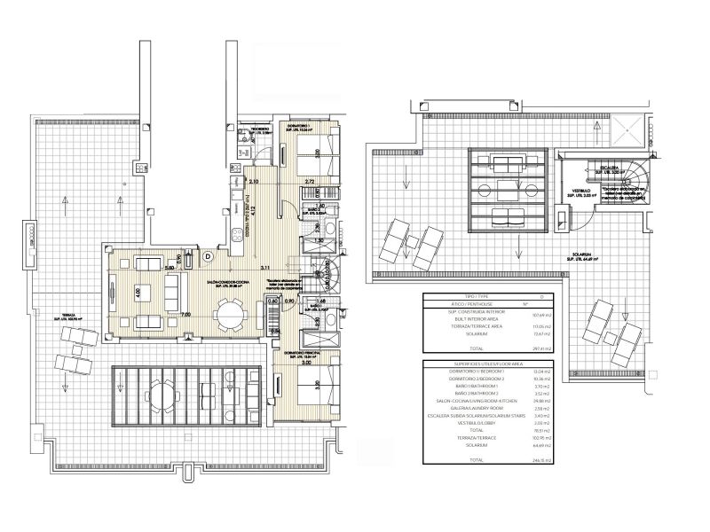 Aquí puedes elegir tu nuevo hogar entre bajos con jardín, altillos con acogedores balcones o áticos con azoteas soleadas y fantásticas vistas a la costa mediterránea y sus alrededores. Todos los apartamentos tienen un espacio abierto entre la cocina y el salón, dos amplios dormitorios con armarios empotrados, un lavadero y dos baños, uno de ellos en suite con el dormitorio principal.