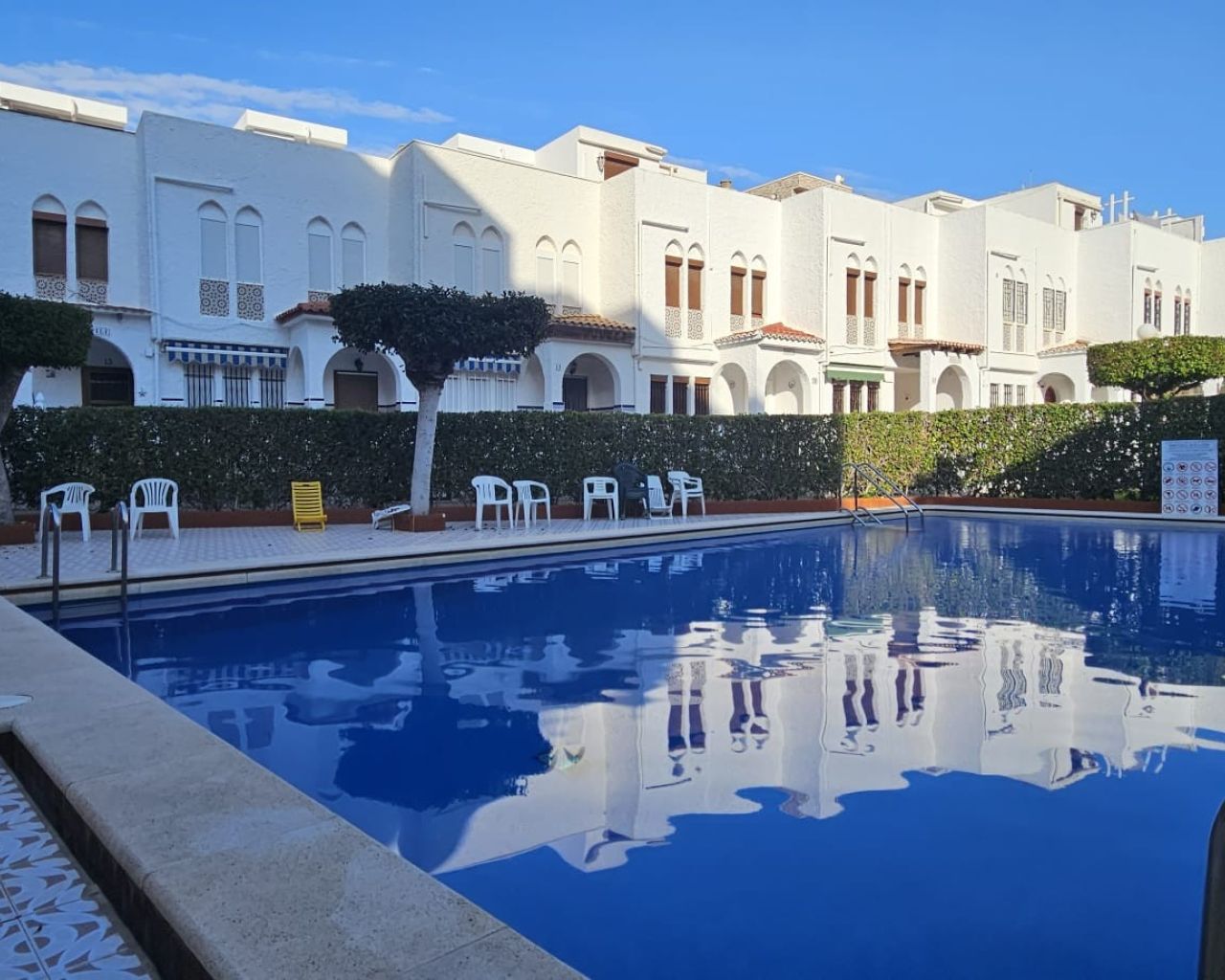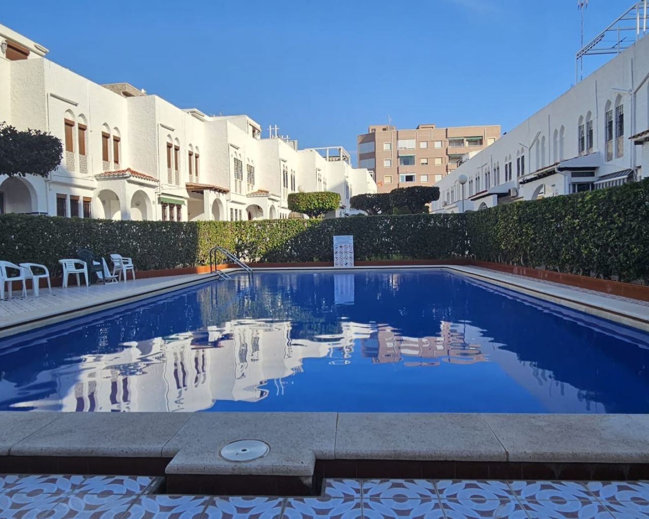 Ubicado dentro de un residencial privado con piscina comunitaria, la vivienda incluye plaza de aparcamiento en superficie y ofrece bonitas vistas a la Laguna de La Mata, un entorno natural protegido que aporta calma y encanto al paisaje.