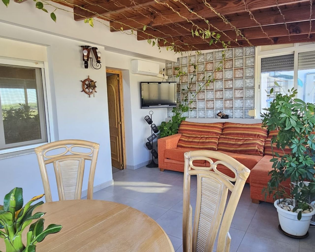 La vivienda cuenta con una superficie construida de 99 m², distribuida en 2 dormitorios dobles con armarios, 2 baños completos, un acogedor salón y una cocina luminosa totalmente equipada. Además, dispone de una terraza acristalada y un patio exterior, ideales para disfrutar del sol y del clima mediterráneo durante todo el año.