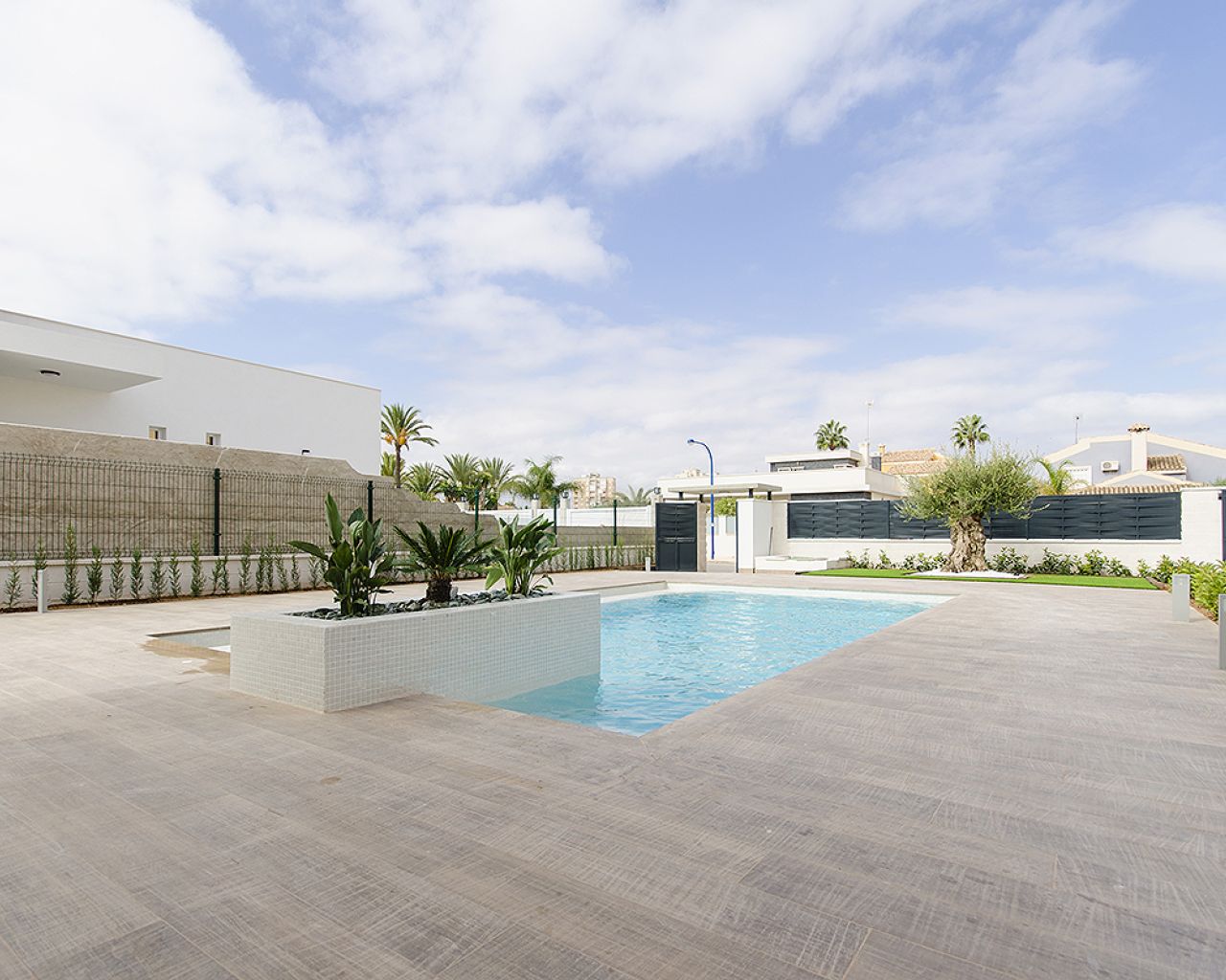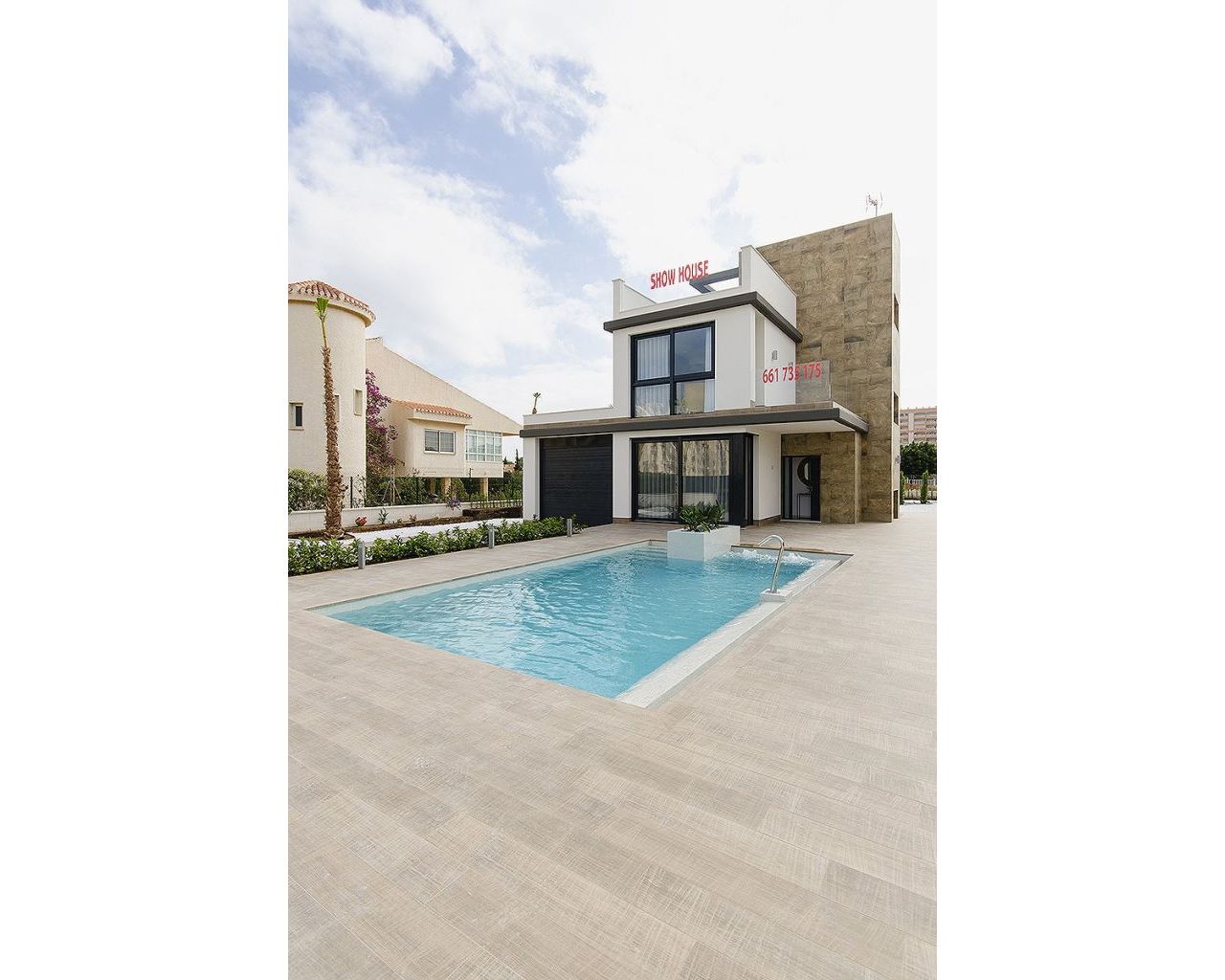 Outside, the villa includes a private garden and terrace, as well as pre-installation for a private swimming pool, allowing you to customize the property to your taste. A private garage is also included.